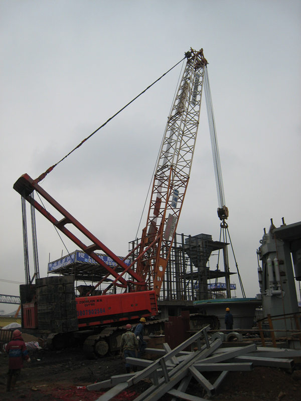 160T履帶吊作業——廠房立柱吊裝